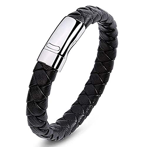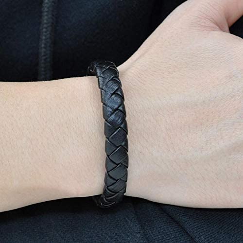 JewelOra - سوار من الجلد البقري الطبيعي لون اسود للرجال من جويل اورا موديل OPE-2006