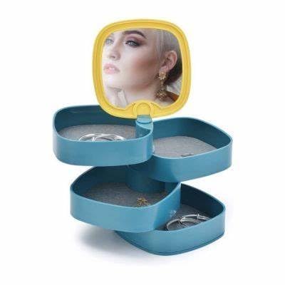 Generic - Jewelry Box with 4-layer, 360 Degree Rotating Jewelry Storage Box, Mirror Jewelry Storage Seat, Dustproof Storage Box, Travel Storage Box for Necklace Bracelet Rings and Earrings, LD-688 (Blue)