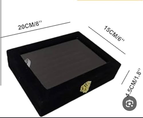 Generic - Jewelry Display Box with Clear Glass Lid, Black, Earring and Ring Organizer, 20x15x4.5cm