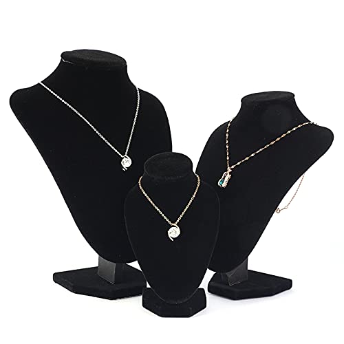 UUIINMNNM - Jewelry Displays Bust 3pcs/Pack Velvet Necklace Chain Holder Storage Display Stand Mannequin Bust Organisation Jewelry Organizer for Women Black Jewelry Mannequin Display (Size : 29CM)
