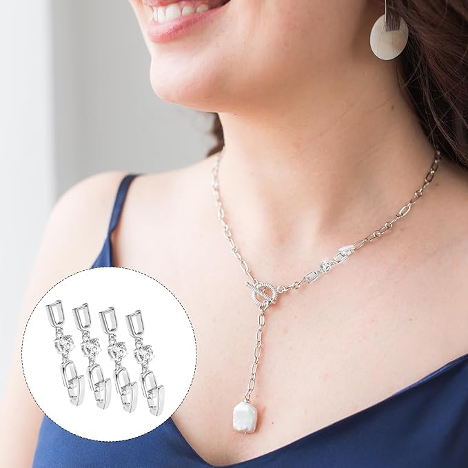 fashion mania - Jewelry Extender 4 Pcs White Silver Plated With Zircon Fits Bracelet Necklace Versatile Extension Accessory
