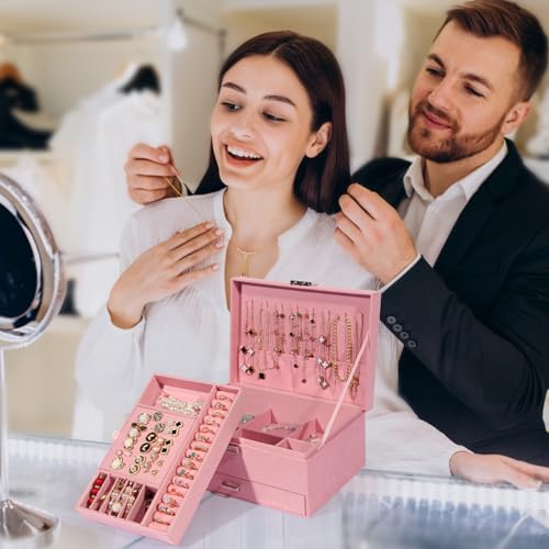 - 【 Luxurious Velvet Jewelry Box for Women & Girls】– Crafted from soft velvet fabric, this jewelry box offers an elegant and smooth-touch feel, keeping your jewelry safe from scratches while adding a timeless charm to your collection.