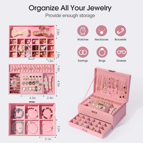 - 【 Perfect Gift for Women & Girls】 – Whether for a birthday, anniversary, Christmas, or Mother’s Day, this girls jewelry box makes a thoughtful and stylish present. A beautiful jewelry box for girls and women who appreciate elegance and organization.