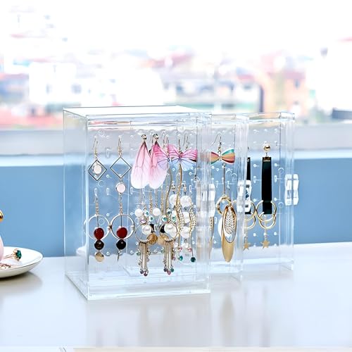 - PERFECT STORAGE SOLUTION: The practical transparent box included in this organizer keeps all earrings neatly tied in one place. With its clear vision, you can easily identify the perfect accessories to complete your look, saving you time and effort on getting ready.