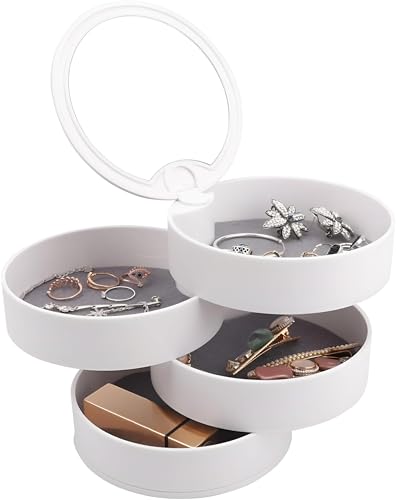 Generic - منظم المجوهرات - صندوق صغير للمجوهرات، حامل أقراط للنساء، علبة مجوهرات دوارة مكونة من 4 طبقات مع مرايا للأساور والخواتم والأساور