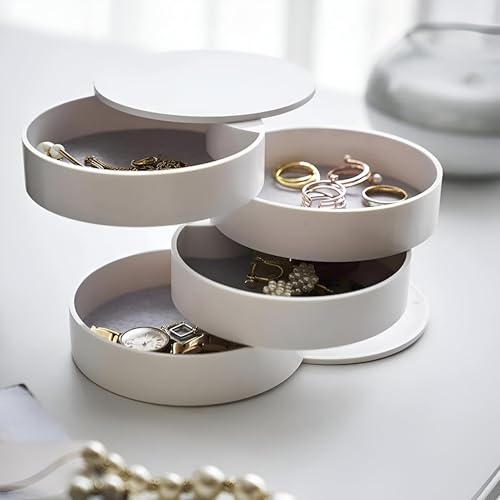 Generic - منظم مجوهرات - صندوق تخزين صغير للمجوهرات حامل أقراط للنساء دوار مكون من 4 طبقات + مرايا- للأساور والخواتم