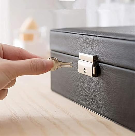 - أمان محسّن: مزود بقفل ومفتاح لحماية مجوهراتك الثمينة والحفاظ على خصوصيتك وأمان ممتلكاتك القيمة