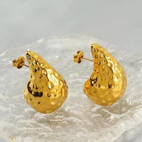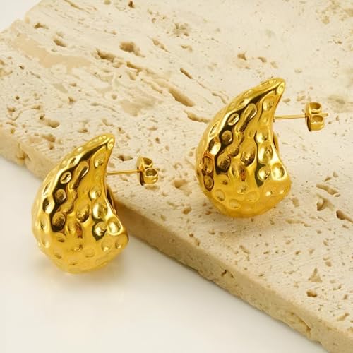 Generic - Jewelry Pieces - Modern Heart Stud Earrings Made from Non-Allergic Stainless Steel, Gold-Plated Finish, Waterproof, Anti-Tarnish, Perfect for Women’s Parties and Events