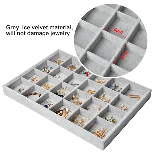 Generic - Jewelry Stand - Stackable Velvet Tray with 24 Compartments for Efficient Jewelry Storage, Perfect for Earrings, Rings, Necklaces, Bracelets, Dimension-35 * 24 * 3cm