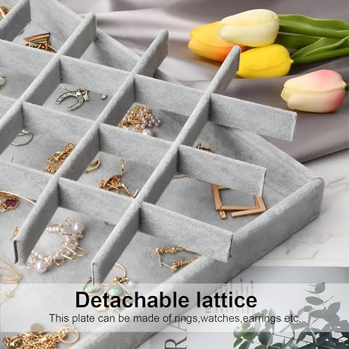 - The jewelry organizer tray features a luxurious velvet design that not only enhances the aesthetic appeal but also provides a soft and protective surface for your precious items, ensuring they remain scratch-free and beautifully displayed.