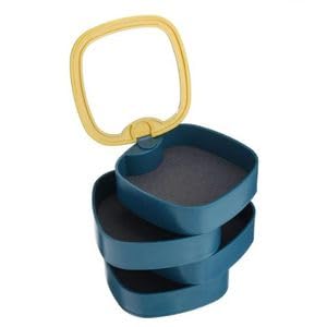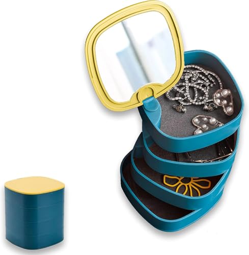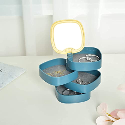 Generic - Jewelry Storage Box with Mirror –4-Layer Rotating 360° Dustproof Organizer for Rings, Necklaces, Earrings & Bracelets – Portable Travel Jewelry Box for Women – Space-Saving Design, LD-688 (Blue)