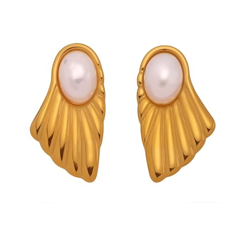 Generic - Jewelry - Stunning Gold Plated Pearl Earrings with Vintage Touch, Safe Hypoallergenic Large Pearl Studs, Ideal for Women Who Appreciate Elegant Accessories