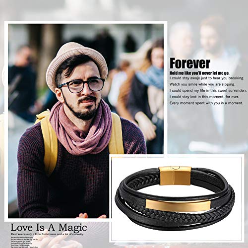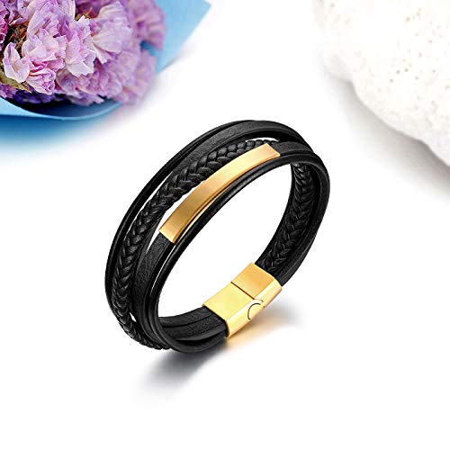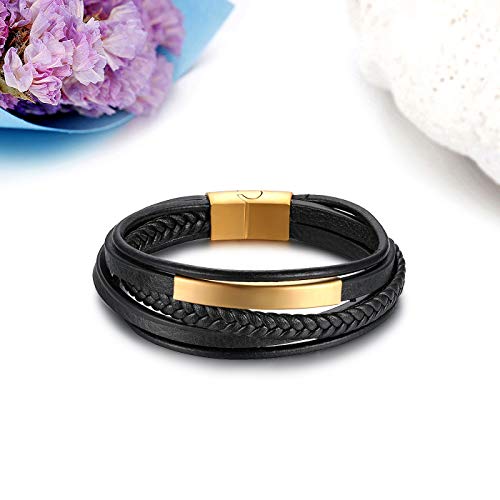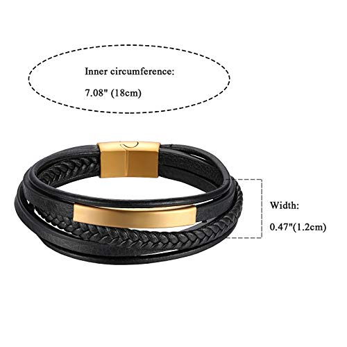 JewelryWe - JewelryWe Jewellery Men's Leather Bracelet, Handmade Braided Multi-Row Leather Bracelet Stainless Steel Magnetic Clasp Adjustable Bangle Cuff for Men Women, Einheitsgröße, Leather