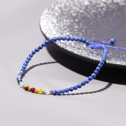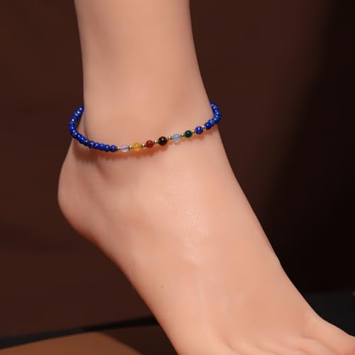 JEWEVER - Jewever 7 Chakra Ankle Bracelets for Women Beach Foot Healing Crystals Lava Rock Essential Oils Diffuser Worry Stone Energy Balancing Meditation Yoga gifts, 8.5 inches, Stone, Lapis Lazuli