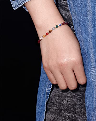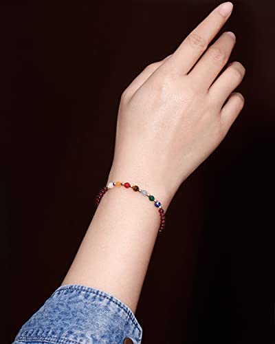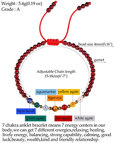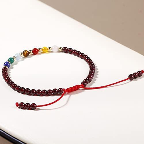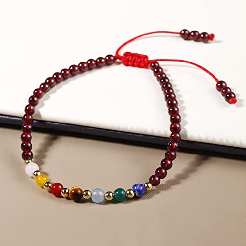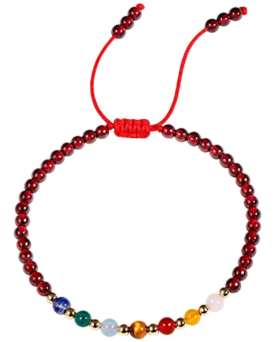 JEWEVER - Jewever 7 Chakra Bracelets for Women Real Stone Lucky Rope Crystal Bead Bracelet Crystals and Healing Stones Jewelry Birthday Gifts (Garnet)