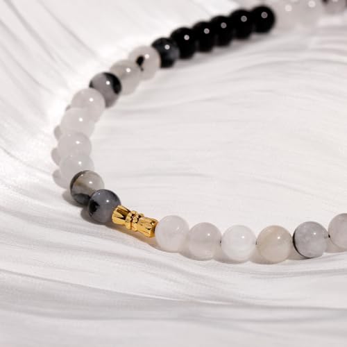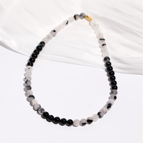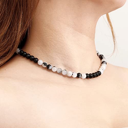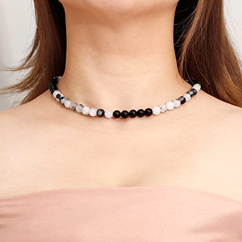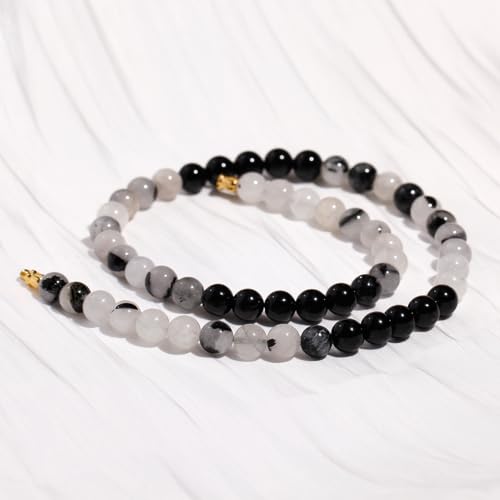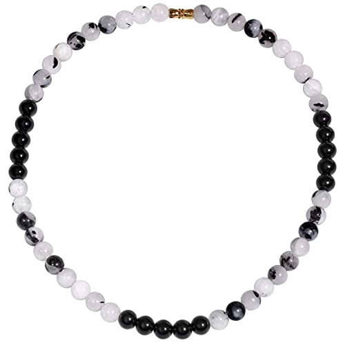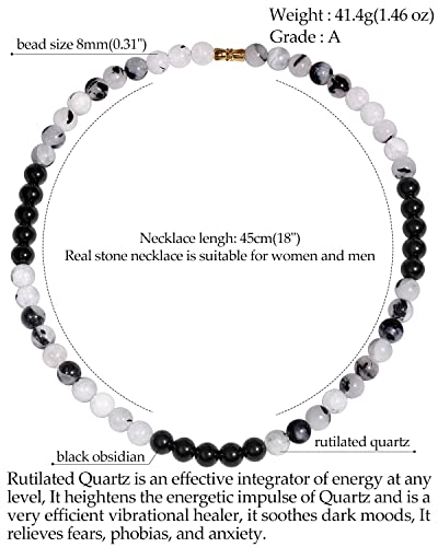JEWEVER - Jewever Black Obsidian / Rutilated Quartz Beaded Crystal Chokers Necklaces for Women and Men Energy Power Healing Crystals Unisex Jewelry Strand Necklace 18"