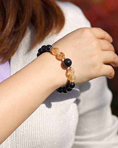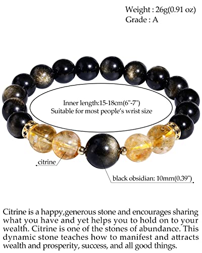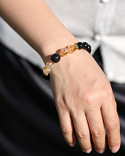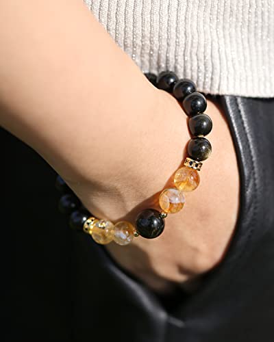 JEWEVER - Jewever Black Obsidian with Citrine Beaded Bracelet for Women Men Bring Lucky Wealth Prosperity Healing Crystals and Gemstones Mens Bracelet 10mm