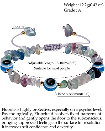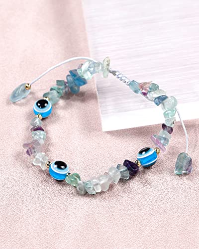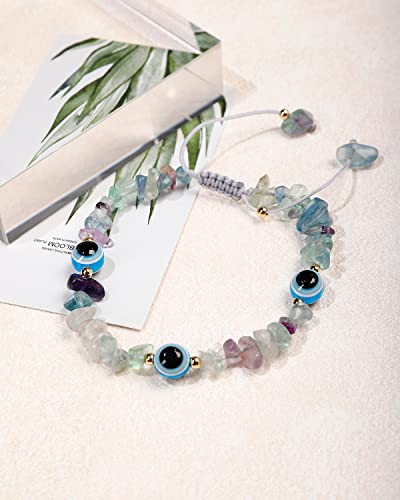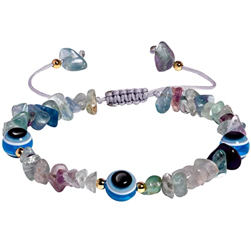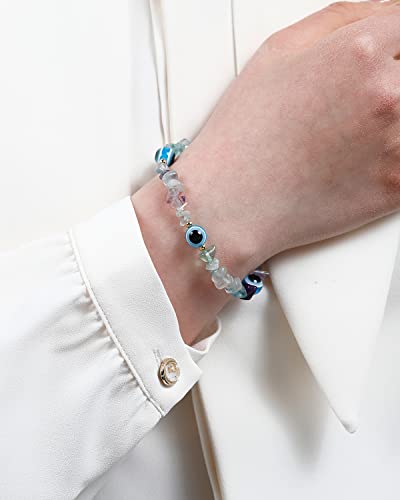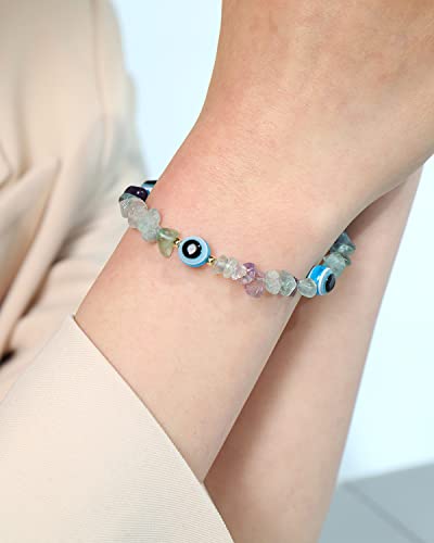 JEWEVER - جويفر اساور عين الحسد مع احجار رقائق طبيعية مرصعة بكريستالات كوارتز للنساء ريكي كريمة روحية هدايا مجوهرات فلوريت