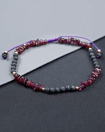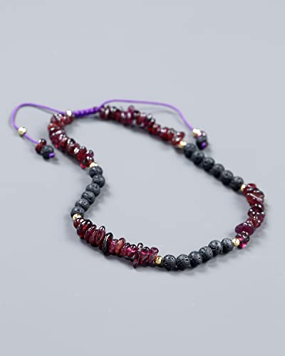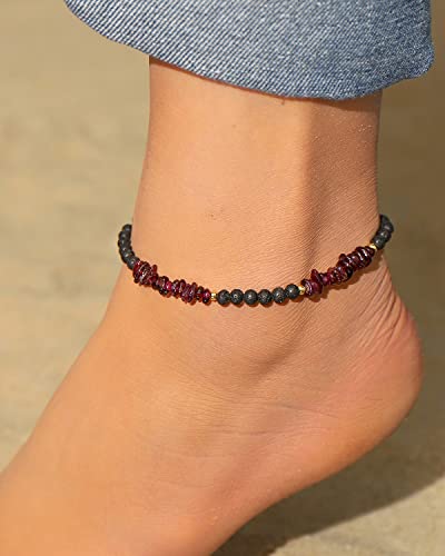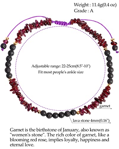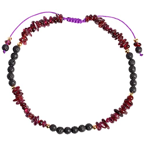 JEWEVER - Jewever Genuine Garnet/Lava Stone Anklets Tumbled Chips Stone Anklet Bracelets for Women Essential Oil Diffuser Foot Beach Crystals and Gemstones Adjustable (8.5-10 Inches), Stone, Garnet