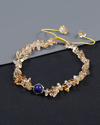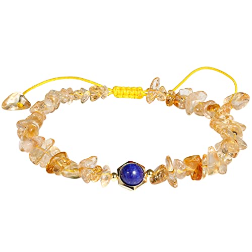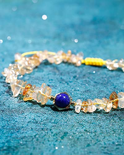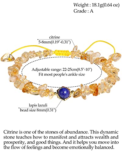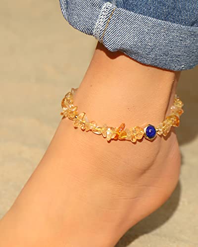 JEWEVER - Jewever Lapis Lazuli/Citrine Anklet Bracelets for Women Tumbled Healing Crystals Chips Gemstones Anklets Wealth Good Luck Adjustable 8.5-10 inch, Stone, citrine