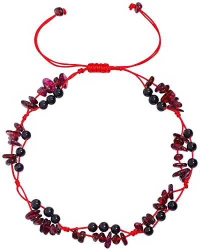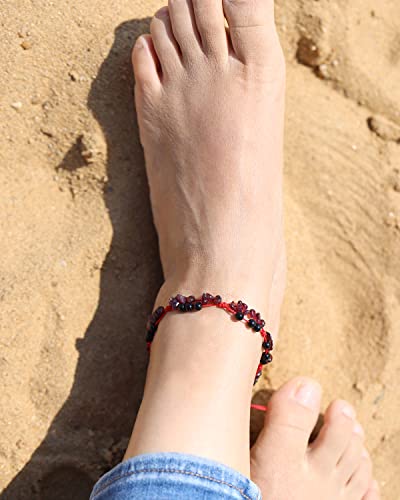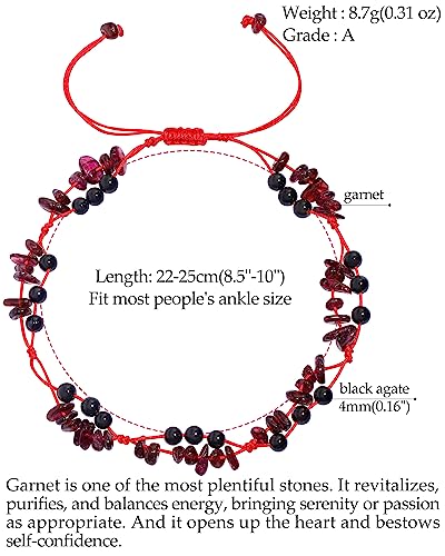 JEWEVER - جويفر خلخال متعدد الطبقات من العقيق الاسود الطبيعي مرصع باحجار خرزية حقيقية للنساء كريستالات علاجية قابلة للتعديل للصيف والشاطئ مجوهرات حجر