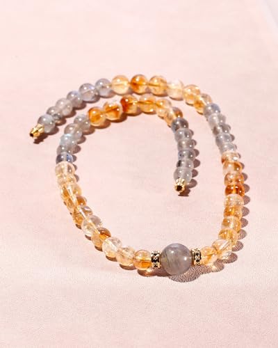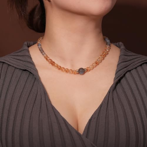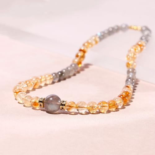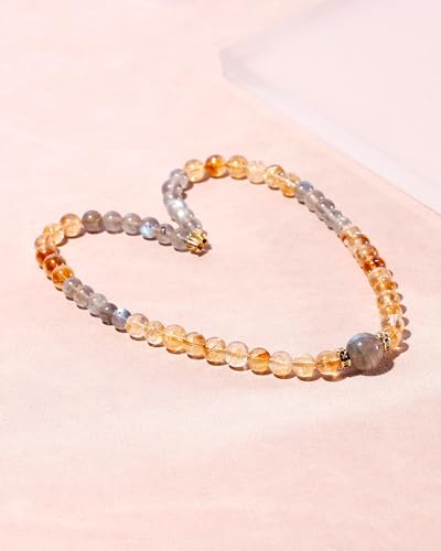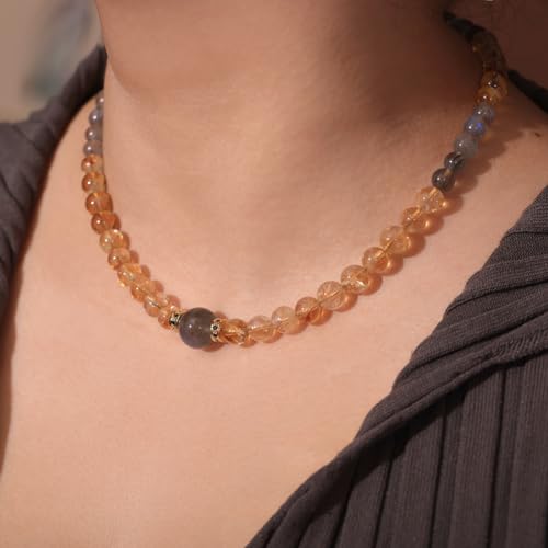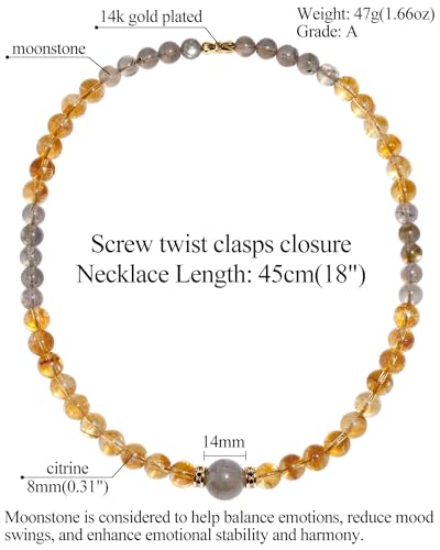 JEWEVER - Jewever Moonstone/Citrine Beaded Necklace Strand November Birthstone Spiritual Crystals and Gemstones Balance Power Energy Bring Lucky Wealth Necklaces for Women Gifts Jewelry