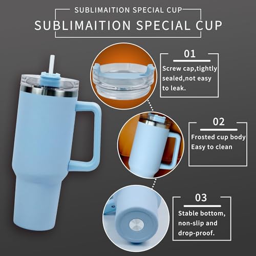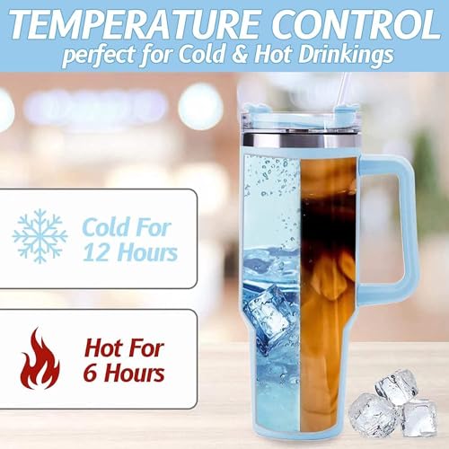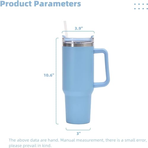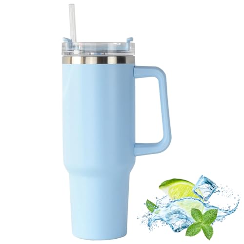 JFABL - كوب مع يد وغطاء مزود بشفاطة، كوب قهوة متنقل مصنوع من الفولاذ المقاوم للصدأ وبتقنية العزل الحراري، مطارة معدنية مزدوجة الطبقات تحفظ السوائل الحارة والباردة والثلج لعدة ساعات من JFABL، أزرق فاتح، 1.2 ل