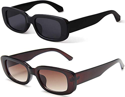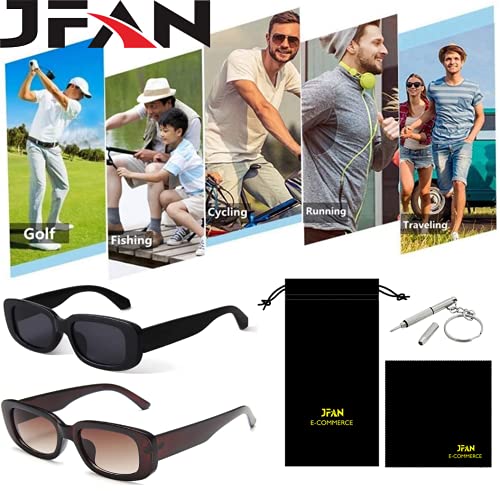 JFAN - JFAN Womens Rectangle Sunglasses 90’ s Retro Driving Glasses with Square Frame UV400 Protection, Black+teal