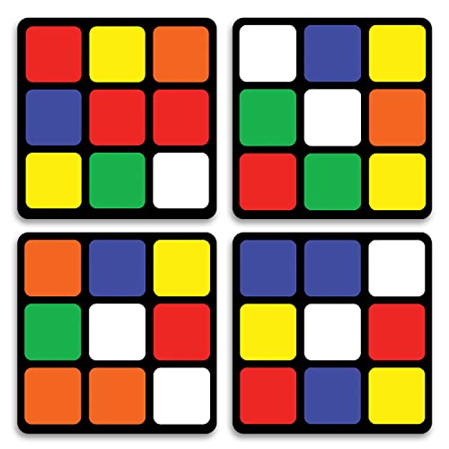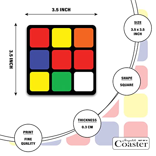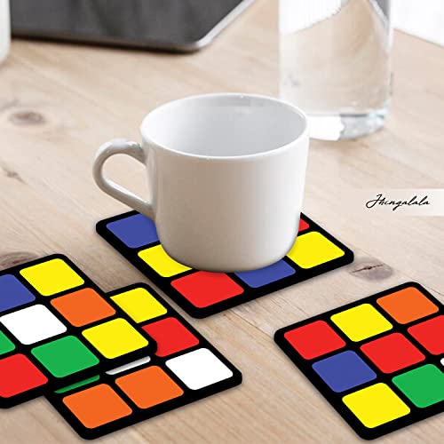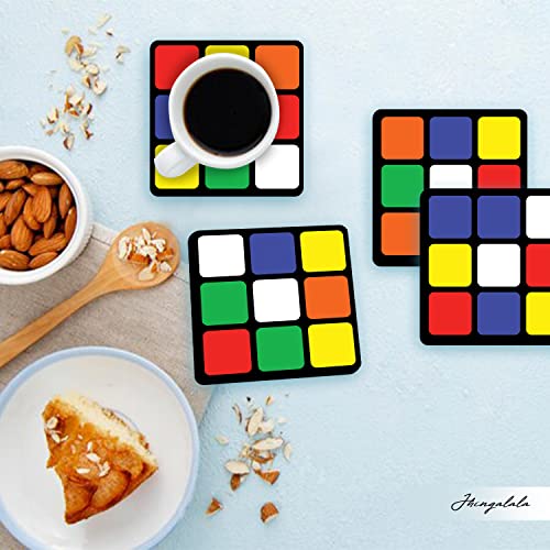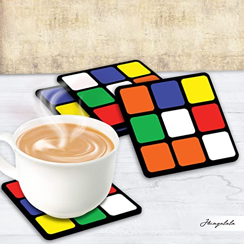 JHINGALALA - مجموعة قواعد أكواب مطبعة من الخشب الليفي متوسط الكثافة MDF بتصميم بازل مكعب من 4 قطع من جينغالالا | قواعد أكواب لطاولة الطعام وديكور المنزل، هدية قواعد أكواب لطاولة المكتب (3.5 سم × 3.5 سم، مربعة)