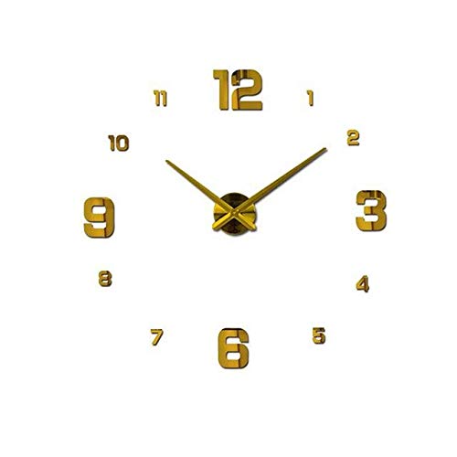 JHZCH - جيه اتش زد سي ساعة حائط عصرية بتصميم عصري من الكوارتز كبيرة حقيقية ثلاثية الابعاد ومرآة لتزيين غرفة المعيشة اللون: ذهبي المقاس: 47 انش تناظري أسيتات فينيل الإيثيلين EVA أكريليك.