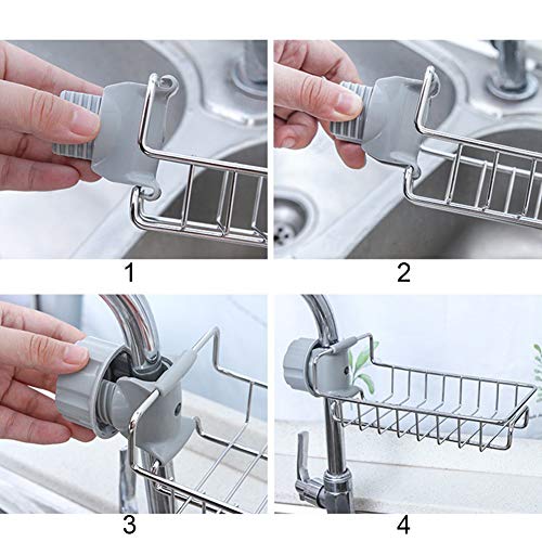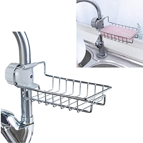 Jiakalamo - منظم للدش والمطبخ، رف تخزين من الفولاذ المقاوم للصدأ يثبت على الحنفية كحامل للإسفنجة ومستلزمات المطبخ من جياكالامو - فضي