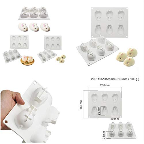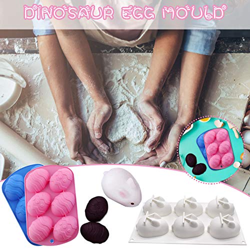 Jialili - 3 قطع من قوالب خبز كيك الارنب على شكل بيضة عيد الفصح، قالب سيليكون ثلاثي الابعاد على شكل ديناصور، قالب شوكولاتة يمكنك صنعه بنفسك لتزيين الصابون والمعجنات والكيك والحلوى (A)