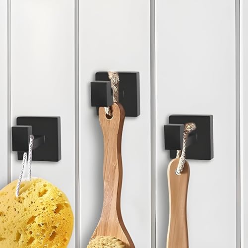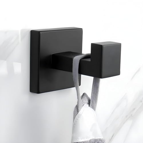 JIALTO - خطافات ذاتية اللصق 4 قطع من جيالتو: ستانلس ستيل شديد التحمل مقاوم للماء للتثبيت على الحائط بدون ثقب - مثالية لتعليق المعطف القوي والمطبخ ومناشف الحمام (اسود غير لامع)