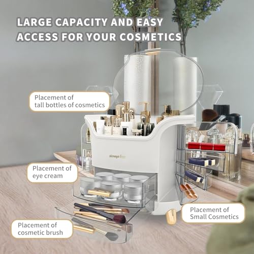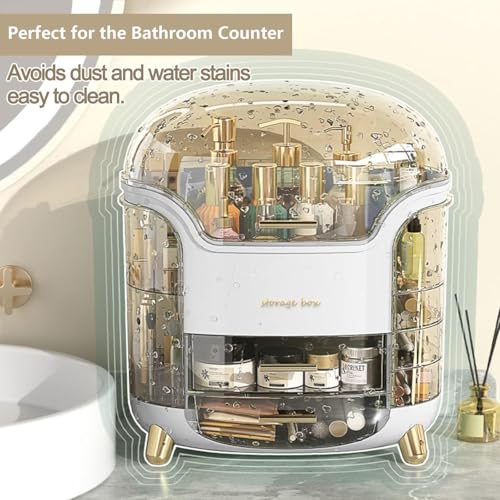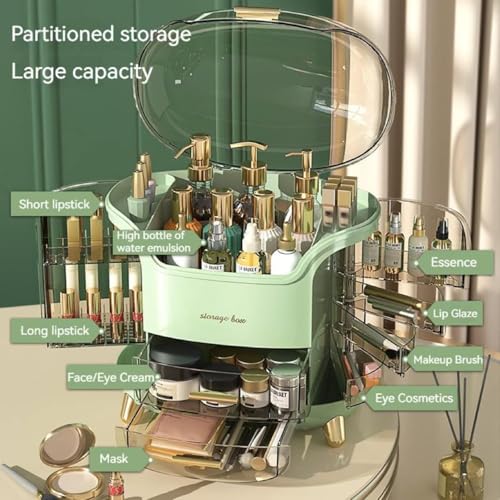 - 𝐃𝐔𝐒𝐓-𝐖𝐀𝐓𝐄𝐑𝐏𝐑𝐎𝐎𝐅 :You can place it in the bathroom and bedroom, it will protect your cosmetics from dust and moisture.Decorated with a clear lid and drawers,the storage drawers are well divided to store lipsticks,makeup brushes,eyebrow pencils,foundation sticks,beauty gadgets,necklaces,rings.