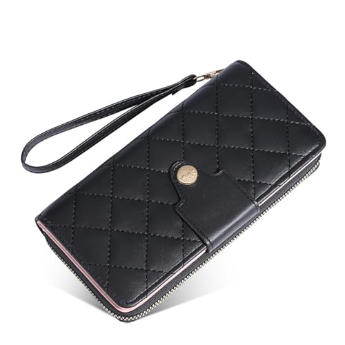 JIAWERUIDE - محفظة نسائية طويلة من الجلد الصناعي بسحاب وزر للاغلاق وفتحات للبطاقات والاساور والعملات المعدنية من جياويرويد، لون اسود