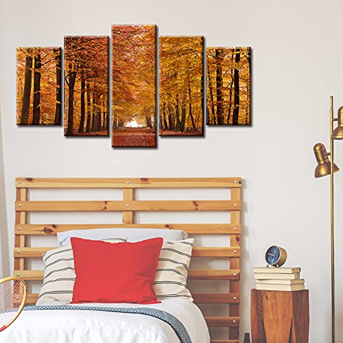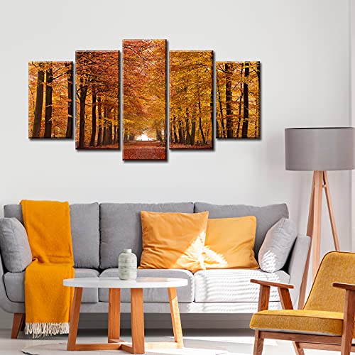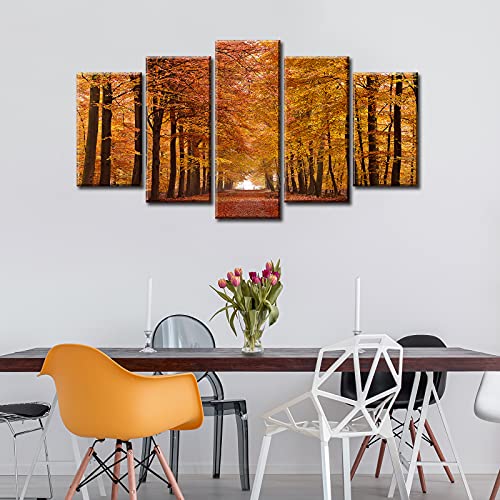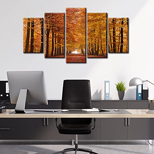 JiazuGo - JiazuGo 5 Piece Autumn Landscape Pictures Canvas Wall Art Forest for Living Room Office Bedroom Stretched and Framed Ready to Hang 40" W×22" H