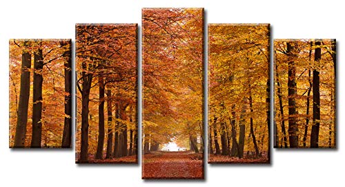 - FALL PICTURES WALL DECOR:The fall canvas is cut into five panels.Nothing says autumn like fall paintings for wall.You can hang this eye-catching autumn wall decor on the wall of your covered balcony,so that the whole neighborhood can enjoy the beautiful colors of fall wall decor.A good choice for you if you like forest painting as a home accessories.