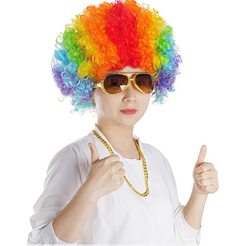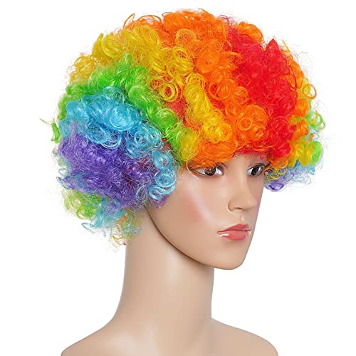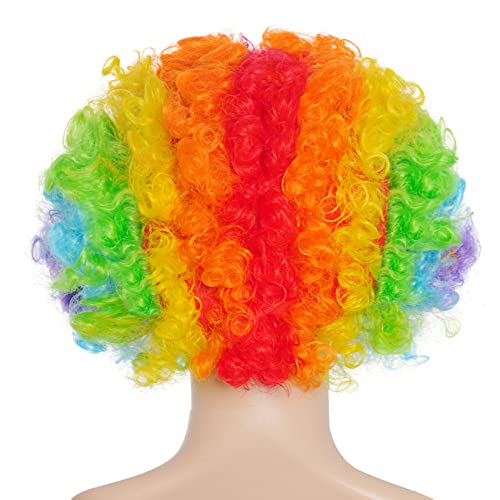 jiebor - jiebor Rainbow Clown Wig Costume Accessories Short Colorful Afro Hair Wig for Kid Women Men Adults 70s 80s Halloween Parties Carnivals Pretend Play