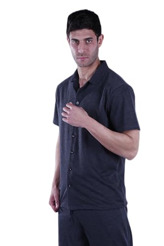 jil - طقم بيجامة بأكمام قصيرة مع شورت بأزرار للرجال من جيل، لون رمادي (GRAY 11C MELANGE)
