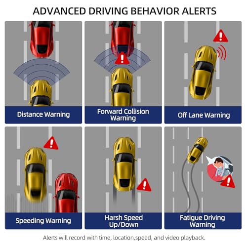 - نظام مساعدة السائق المتقدم (ADAS) - تتيح خوارزمية ADAS للجهاز مراقبة الحوادث المتعلقة بمسافة المتابعة والاصطدامات القريبة والحفاظ على المسار وما إلى ذلك، وتنبه التنبيهات الصوتية السائق في الوقت الفعلي.