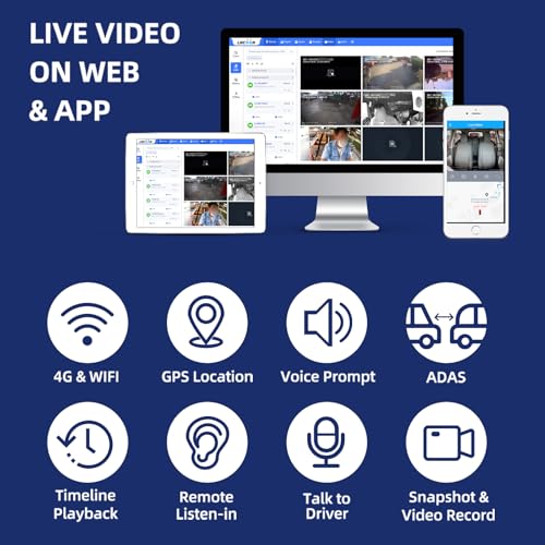JIMIMAX - كاميرا جيميماكس JC261 ADAS Live Video 4G Dash Cam، مسجل قيادة مراقب عن بعد، كاميرا امامية بدقة 1080 بكسل، تسجيل متواصل لمدة 24 ساعة، (نظام دي ام اس اختياري)