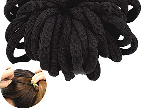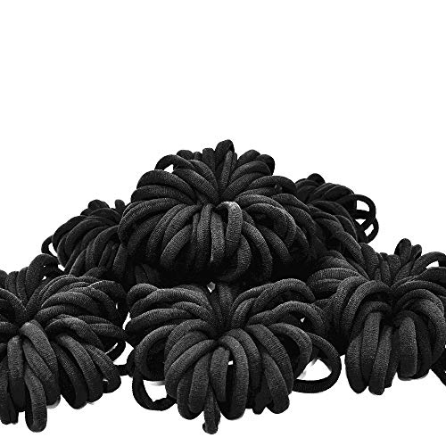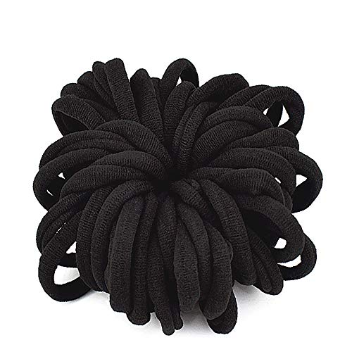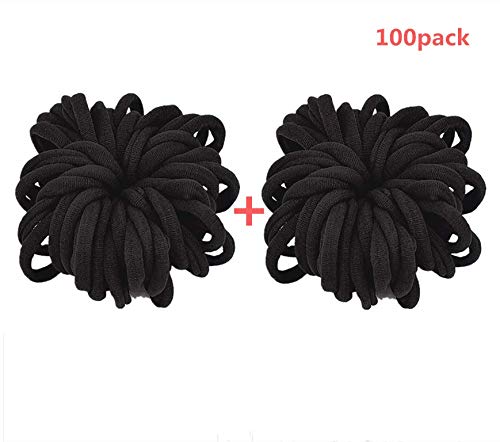 JinPXiu - توك شعر مرنة للنساء حوامل ذيل الحصان للفتيات اكسسوارات ربطات قطنية بدون خياطة اساتك بلون اسود - لا تسبب ضررًا 100 قطعة