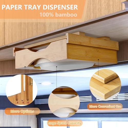 JINYOU - موزع أطباق ورقية من الخيزران، حامل يثبت اسفل الخزانة لأطباق ورقية مقاس 22 سم و23 سم و25 سم، موفر للمساحة، للمطبخ والمطعم من جينيو