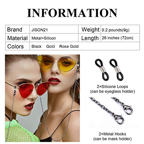 JISON21 - Mask Chain, Acrylic Eyeglass Chain, Retro Pattern Mask Lanyard Stylish Necklace for Mask Exemption Lanyard for Both Adults and Kids (Black-1)