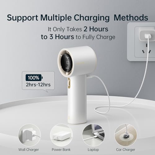 JISULIFE - JISULIFE Portable Handheld Fan, Speed(1-100) Adjustable Turbo Mini and 3600mAh Battery Rechargeable Personal Fan, Digital Display, Gifts for Women Men Travel/Camping/Outdoor-White