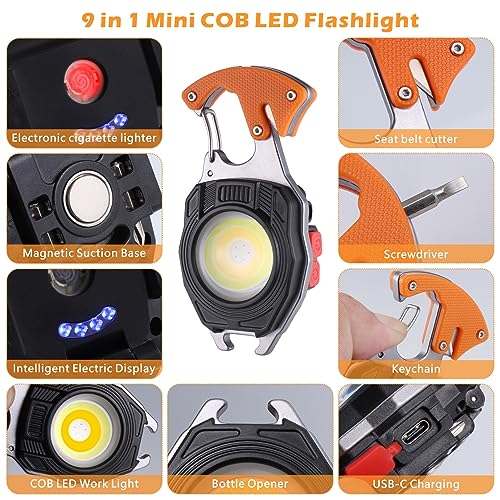 - Multifunctional torch: this keyring light has key fob, display, bottle opener, screwdriver, safety belt cutter, electronic cigarette lighter tools