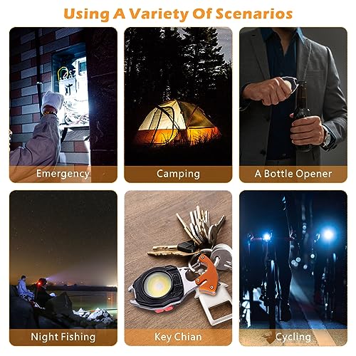 - Super bright 7 light modes: mini keyring torch has 7 modes. This portable mini LED work light can emit up to 800 lumens of light and offers a wider range of bright light that is enough to illuminate your path and dark rooms