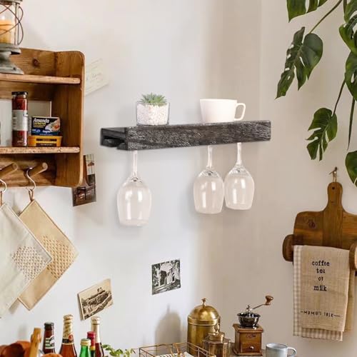- Easy-to-install Stemware display rack: With beautifully made wine glass storage rack, you can display antique, retro or hard-to-find fluted wine glasses, which will make you feel happy every time you walk into the kitchen. This shelf can also be used to store wine bottles. Dimensions are 17 inches long, 4.3 inches wide and 2 inches high.