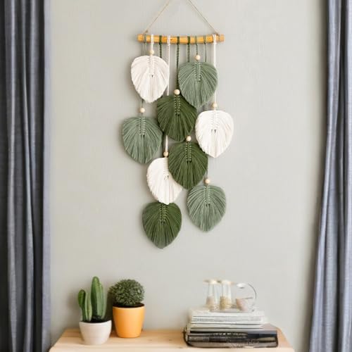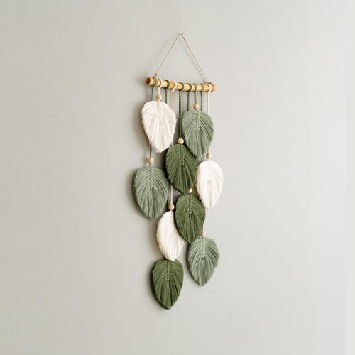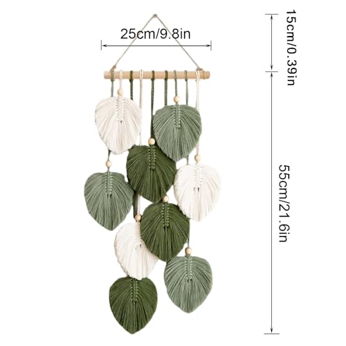 Jlnmmn - Jlnmmn Macrame Wall Hanging Boho Decorative Macrame Tapestry with Wooden Beads and Green Leaves Tapestry Handmade Tapestry for Outdoor, Living Room, Bedroom, Indoor