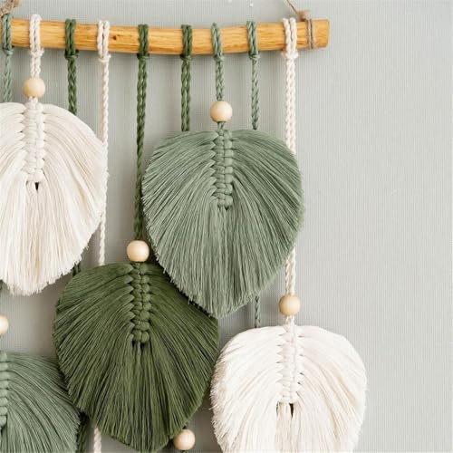 - Quality materials: handmade tapestries made of high-quality cotton material, fine handmade, the shape of the leaves symbolises the beauty of nature and wooden beads. Hung with wooden poles, safe and stable, not easy to break